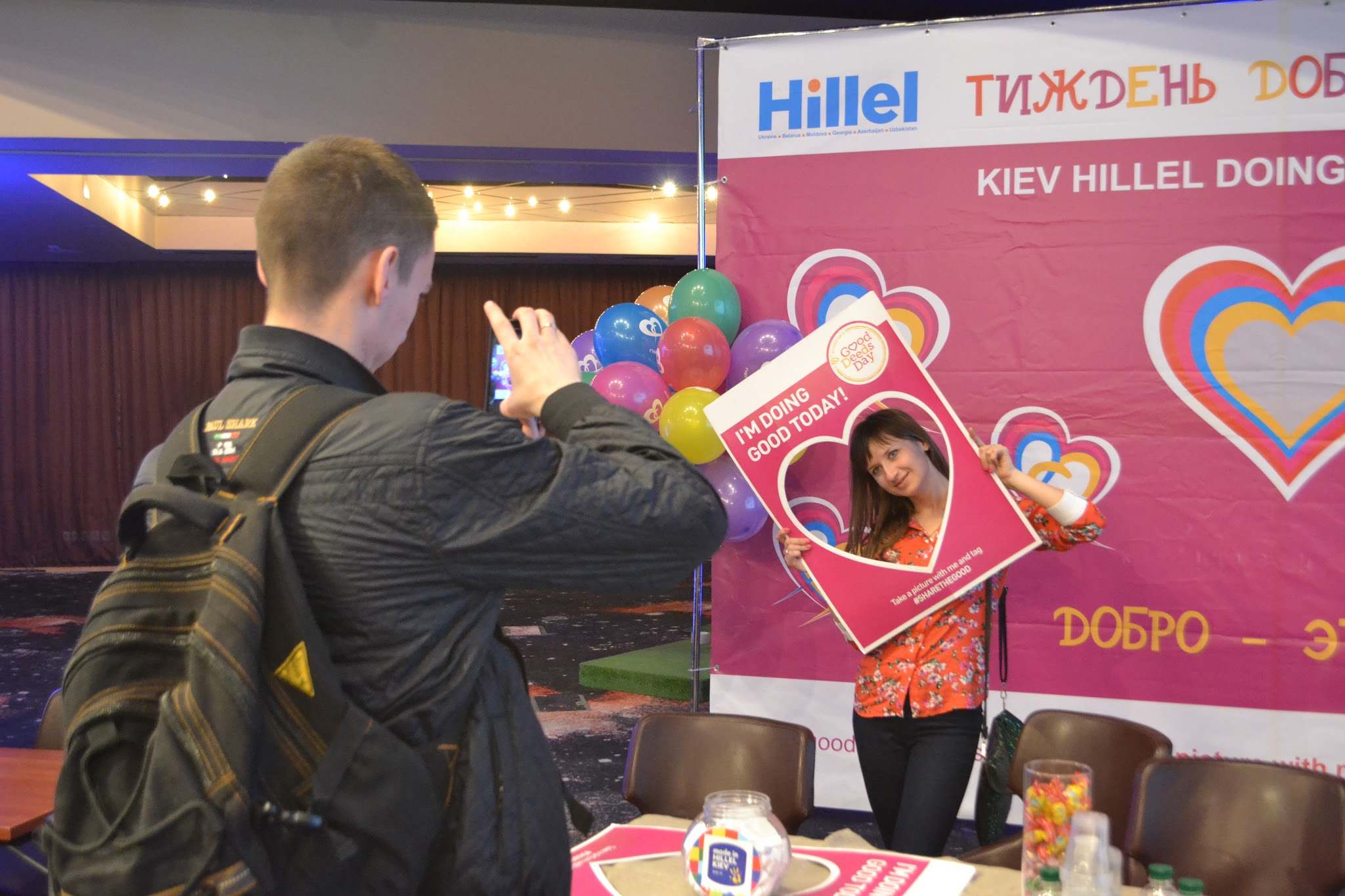 Закрытие Недели Добрых Дел прошло на ярмарке Масы в гостинице "Крещатик". По мере узнавания о возможностях в Израиле ребята узнавали и о возможностях здесь, в Киеве. Мы рассказывали посетителям о том, что такое Неделя Добрых Дел и как она прошла у нас в этом году. Как важно делать добрые дела и как можно помочь без большого количества материальных затрат. Все желающие смогли сфотографироваться на фоне нашего яркого доброго баннера, который очень привлекал к себе внимание. А также никто не ушел без маленького доброго дела, которое должны были выполнить в течение следующей недели. Там были такие дела как отправить открытку другу и поднять ему настроение, сдать кровь, отдать какую-то свою вещь нуждающимся и многое другое.