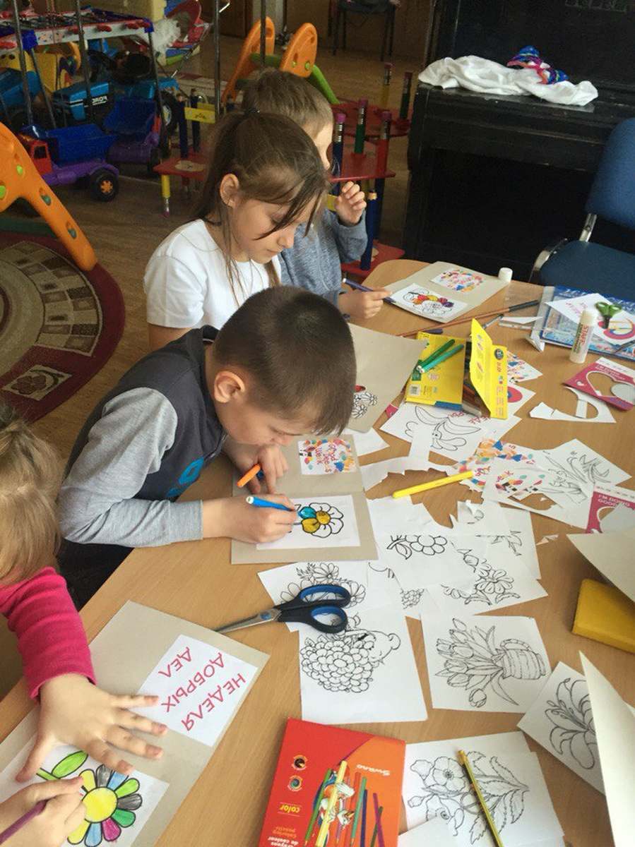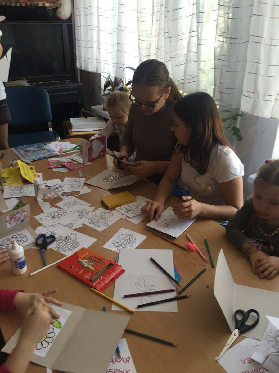Волонтеры проекта вместе с детьми-подопечными " Хеседа" своими руками делали открытки, которые в дальнейшем будут подарены ветеранам.