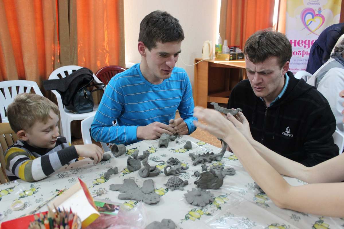 6 апреля в помещении Гилеля можно было заметить странную группу – студенты и детки со специальными потребностями. Удивительное дело – и у тех, и у других по-особому светились глаза, наполненные взаимной любовью и творчеством. Ведь студенты не просто пришли к детям – они проводили мастер-классы по лепке из глины и рисованию. Оказалось, творчество не просто развлекает, помогает раскрыться – оно лечит. Лечит от серых будней, от неуверенности в себе, от навалившейся боли и бесконечных проблем. Поэтому студенты сначала провели занятия с беспокойной «публикой», а потом обучили этим же техникам родителей. А это значит, что эстафета добра будет продолжаться! Пусть об этом напомнит шарик с логотипом НДД в маленькой ручке творца!