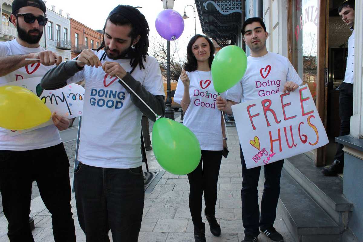Акция Free Hugs на улицах Тбилиси
