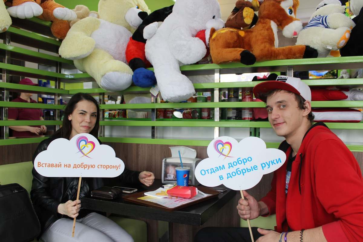 По городу шагает Весна! Все заметили? А заметили, что уже с 3 апреля 2016 года в городе стало тепло от новых акций Гилеля? Что вместо рекламы фастфуда вам положили на подносик рекламу Недели Добрых Дел! Что на заправках зеркала украсились «настроенье-поднимательными» наклейками: «Улыбка имеет эффект зеркала. Улыбайся!» А чего стоит акция на 6-ти заправках Симферополя под выразительным названием «Добрый пит-стоп»! Люди могут подойти и купить выставленные на витрине предметы гигиены, тапочки, игрушки и другие нужности для малообеспеченных и детских домов – и сложить в большие боксы. И покупают, и очень быстро наполняют! Потому что как остаться равнодушным к призыву: «Зарядись добром!» (если надо – зарядки для гаджетов к вашим услугам). Кто творит добро – заряжается позитивом, потому что быть добрым – модно! (У нас – точно-точно!)