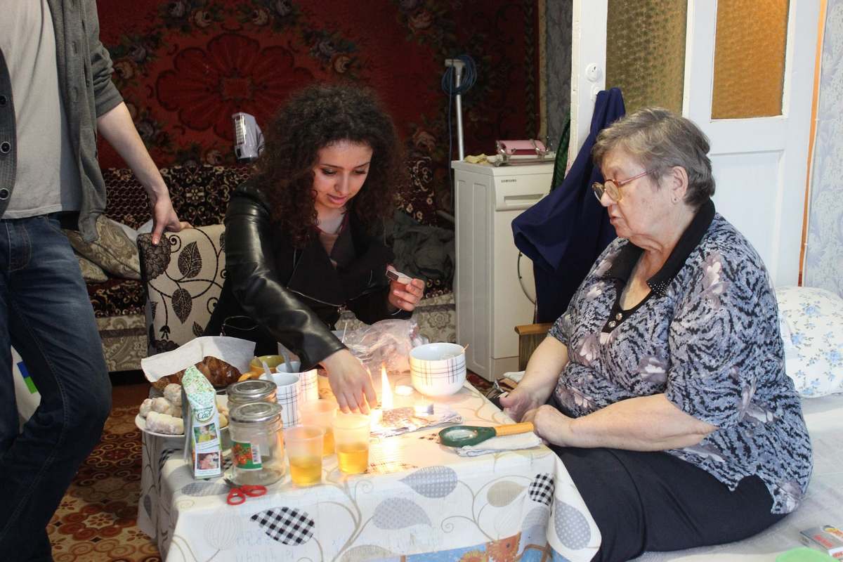 Каждый год копилка Недели Добрых Дел пополняется новыми и новыми добрыми акциями. Но есть одно, очень важное событие, которое неизменно повторяется – посещение пожилых клиентов «Хесед Шимон» активистами Гилеля и проведение шаббатов на дому. Польза от этого обоюдная – студенты могут прикоснуться к живой истории еврейского народа, отшлифовать свои знания по шаббатней церемонии, а старики получают внимательных и чутких собеседников. Глозман Борис Ефимович, Могилевская Идес Моисеевна, Мартынова Инна Константиновна с нетерпением ждали молодежь. Шаббатние халлы и сок, принесенные гостями, стояли рядом с хозяйским чаем, разговоры о войне и детях перемежались с рассказом о жизни Гилеля и еврейских традициях. Несколько часов встречи пролетели незаметно – ведь это был не монолог, а заинтересованный и живой диалог. Энергичные и ироничные, старшие невольно заряжали позитивом, жаждой жизни, стремлением все знать. Грустно, что такие встречи не часты. Радостно, что нас приглашают и на следующий год. Придем?